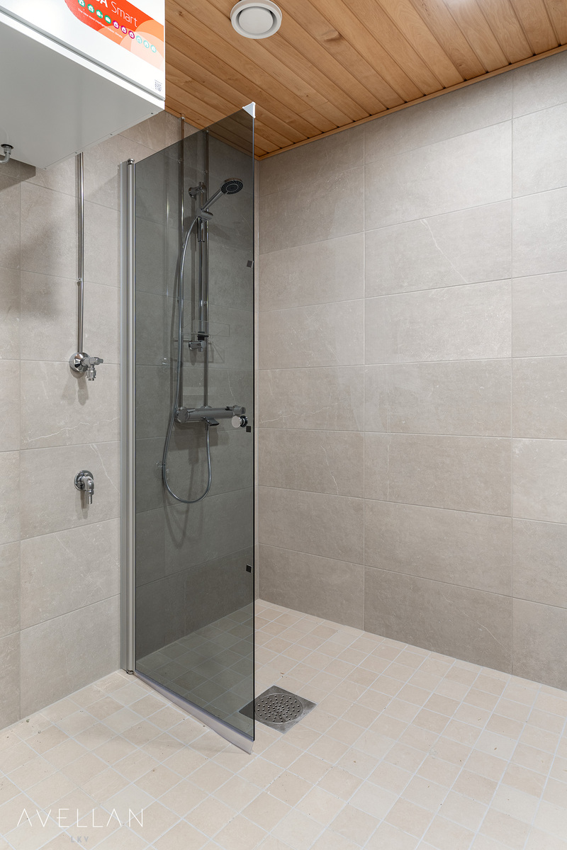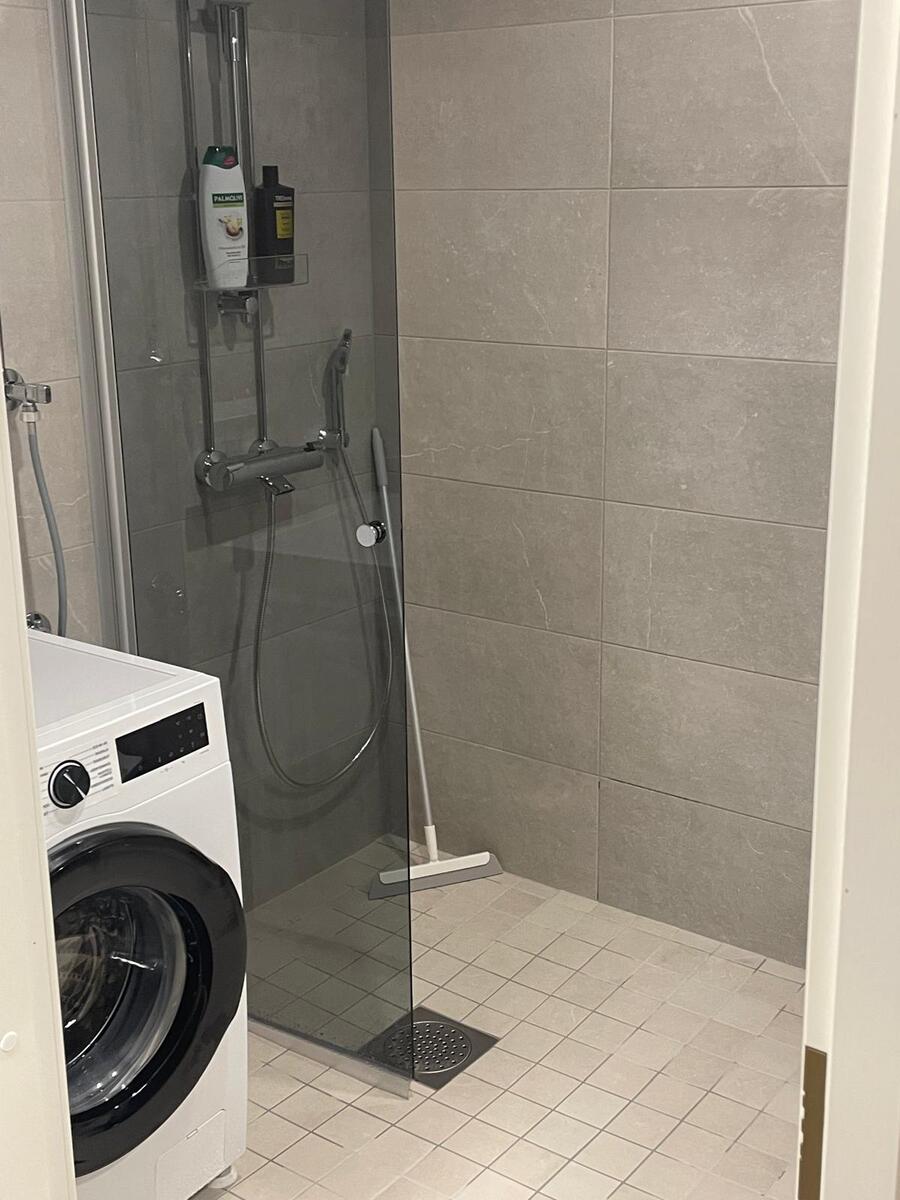 Varusteet: suihkuseinä,pesukoneliitäntä,lattialämmitys,wc-istuin,suihku,peilikaappi